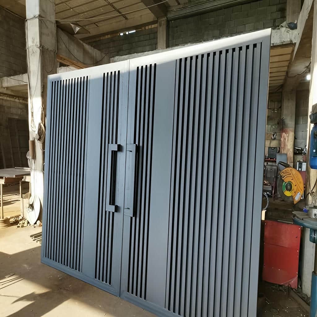 درب فلزی مدرن اسپاین در ساری از پروفیل آهنی سنگین و صفحات فلزی یکپارچه ساخته شده است. اتصالات جوش CO₂ صنعتی و رنگ پودری مقاوم در برابر رطوبت و زنگ زدگی, این درب را به یک انتخاب مستحکم و با دوام تبدیل کرده است.